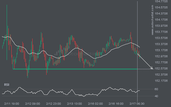 USDJPY is moving toward a level at 152.5530, which it has tested many times before. We have seen it retrace from this level before, so at this stage it isn’t clear whether it will break through this price or rebound again. If USDJPY continues on its current trajectory, we may see it move toward 152.5530 within the next 19 hours.