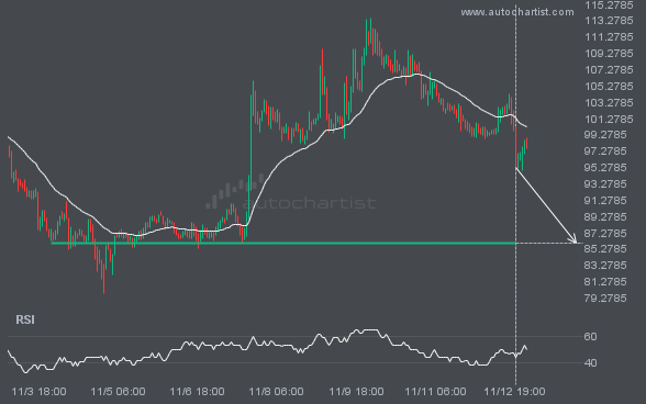 NGC/USD is moving toward a resistance line it has tested many times. It has retraced from this line before, so it’s unclear whether it will break through or rebound again. If NGC/USD continues on its current trajectory, it could reach 4.4504 within the next 19 hours.