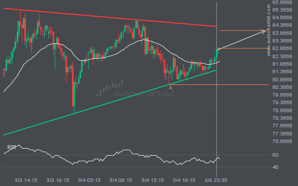 BRN/USD is moving toward a resistance line it has tested many times. It has retraced from this line before, so it’s unclear whether it will break through or rebound again. If BRN/USD continues on its current trajectory, it could reach 84.0085 within the next 10 hours.