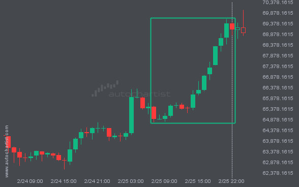 BTCUSD has moved higher by 6.44% from 64904.06 to 69080.89 in the last 15 hours.