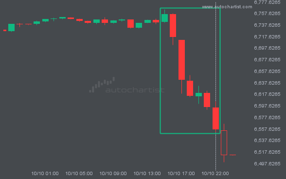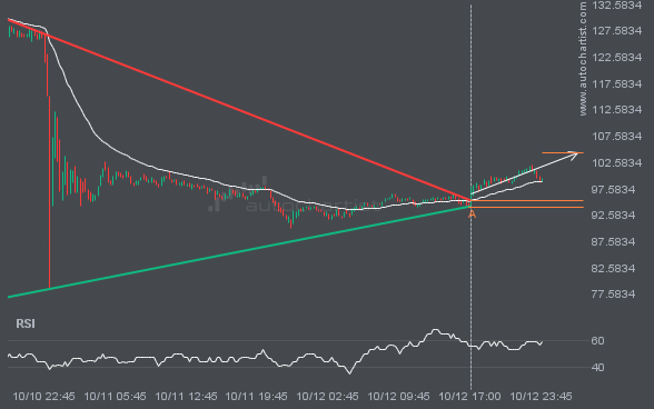 LTCUSD has broken through a resistance line. It has touched this line at least twice in the last 3 days. This breakout may indicate a potential move to 104.4462 within the next 6 hours. Because we have seen it retrace from this position in the past, one should wait for confirmation of the breakout before […]