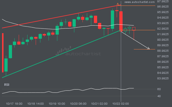 LTCUSD has broken through a support line of a Pennant and suggests a possible movement to 89.2287 within the next 20 hours. It has tested this line in the past, so one should probably wait for a confirmation of this breakout before taking action. If the breakout doesn’t confirm, we could see a retracement back […]