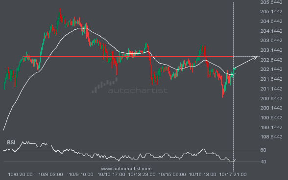 GBPJPY is about to retest a key horizontal resistance level near 202.8255. It has tested this level 3 times in the recent past and could simply bounce off like it did last time. However, after this many tries, maybe it’s ready to start a new trend.