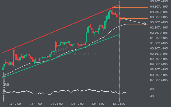 BTCUSD is heading toward the support line in a Channel Up pattern. If this move continues, the price of BTCUSD could test 93159.8538 within the next 22 hours. It has tested this line many times before, so the move could be short-lived and may rebound as it has before.