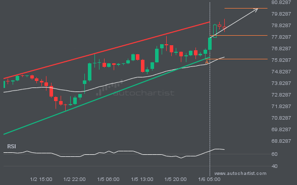 XAGUSD is moving toward a resistance line it has tested many times. It has retraced from this line before, so it’s unclear whether it will break through or rebound again. If XAGUSD continues on its current trajectory, it could reach 80.2846 within the next 9 hours.