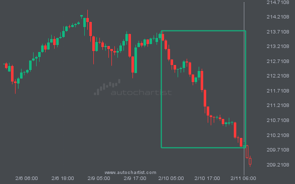 An emerging Channel Up pattern has been detected for FTSE100 on the 4 hour chart. There may be a move toward 10606.8650 in the next few candles. Once it reaches the resistance, it may continue its bullish run or revert to current price levels.