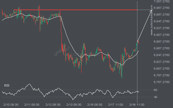 S&P500 is heading toward 6982.0000 and could reach this level within the next 2 days. It has tested this level numerous times in the past, and this time could be no different, ending in a rebound rather than a breakout. If a breakout does not occur, we may see a retracement back to current levels.