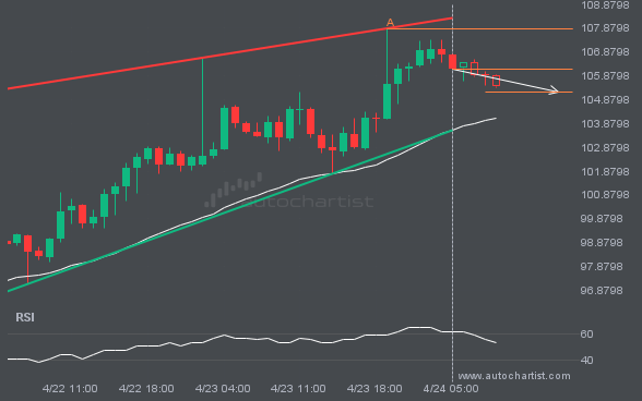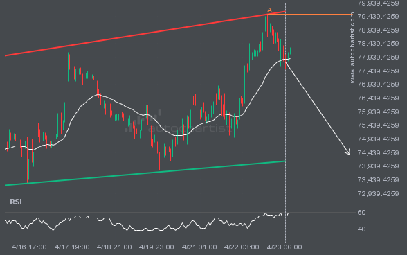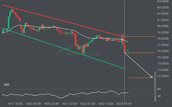 An emerging Channel Down has been detected on XAGUSD. The pattern has not yet broken through resistance, but the price is expected to move up over the next few hours. At the time the pattern was found, the price was 75.785, and it is expected to move to 71.7967.