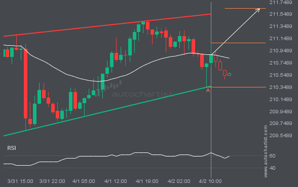 NAS100 has broken through the resistance line of a Channel Down technical chart pattern. Because it has retraced from this line in the past, you should wait for confirmation of the breakout before taking any action. It has touched this line twice in the last 17 days, which suggests a possible target around 24228.8492 within […]