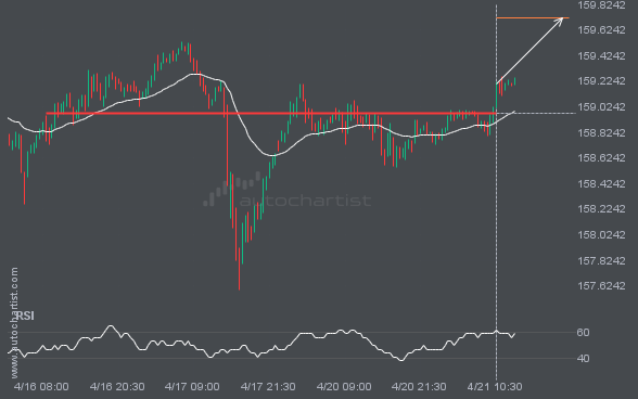 It would be prudent to confirm the breakout that just occurred. Do you consider the move through support significant? Do you have indicators confirming that the price momentum will continue? If so, aim for a target of 157.4991, but consider reducing your position size as the price approaches that target.