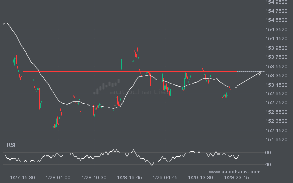 An emerging Falling Wedge pattern has been detected for USDJPY on the 1 hour chart. There may be a move toward 150.7935 in the next few candles. Once it reaches the support, it may continue its bearish run or revert to current price levels.