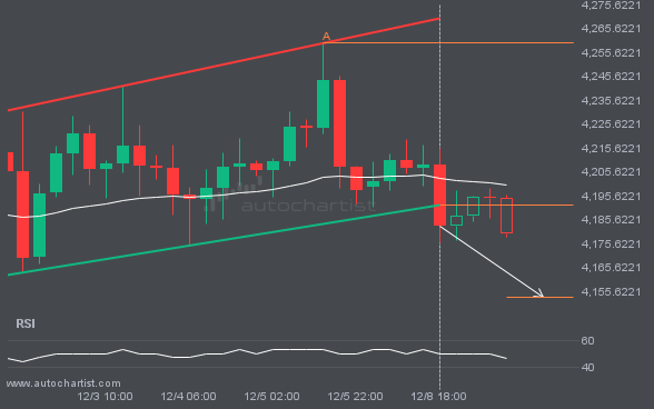 An emerging Triangle has been detected on XAUUSD on the 4 hour chart. There is a possible move towards 3940.4963 next few candles. Once reaching resistance it may continue its bearish run or reverse back to current price levels.