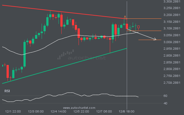 This trade setup on ETHUSD is formed by a period of consolidation; a period in which the price primarily moves sideways before choosing a new direction for the longer term. Because of the bearish breakout through support, it seems to suggest that we could see the next price move to 3193.0223.