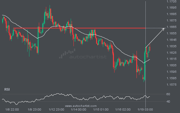 FTSE100 is moving toward a resistance line. Since it has retraced from this line before, we may see either a breakout through it or a rebound to current levels. It has touched this line multiple times in the past 8 days and may test it again within the next 12 hours.