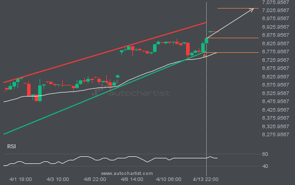 S&P500 has broken through 6756.2100, which it has tested many times before. We have also seen it retrace from this level. If this new trend persists, S&P500 may be heading towards 6730.6089 within the next 3 days.