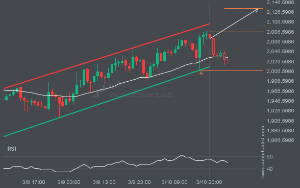An emerging Channel Down has been detected on FTSE100. The pattern has not yet broken through support, but the price is expected to move up over the next few hours. At the time the pattern was found, the price was 10209.23, and it is expected to move to 10281.8381.