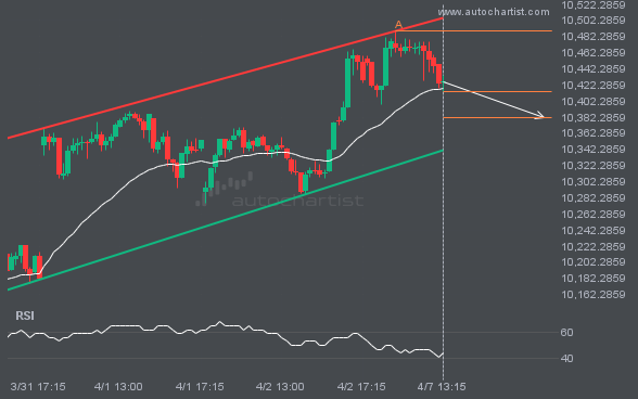 S&P500 is moving toward a support line. Because it has retraced from this level in the past, we may see either a breakout through this line or a rebound to current levels. It has touched this line multiple times over the last 15 days and may test it again within the next 3 days.