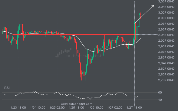 The breakout of ETHUSD through the 2948.7900 price line is a breach of an important psychological price level that it has tested numerous times in the past. If this breakout persists, ETHUSD could test 3053.5471 within the next 19 hours. One should always be cautious before placing a trade and wait for confirmation of the […]