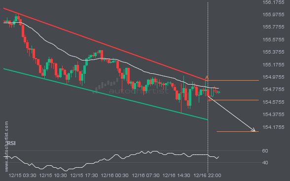 GBPJPY is moving toward a resistance line. Because it has retraced from this level in the past, we may see either a breakout through this line or a rebound to current levels. It has touched this line multiple times over the last 7 days and may test it again within the next 2 days.
