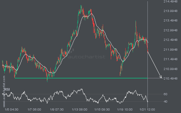 GBPJPY is moving toward a key support level at 210.5175. GBPJPY has tested this level 5 times before, and on each occasion it has bounced off. Could this be the time it finally breaks through?