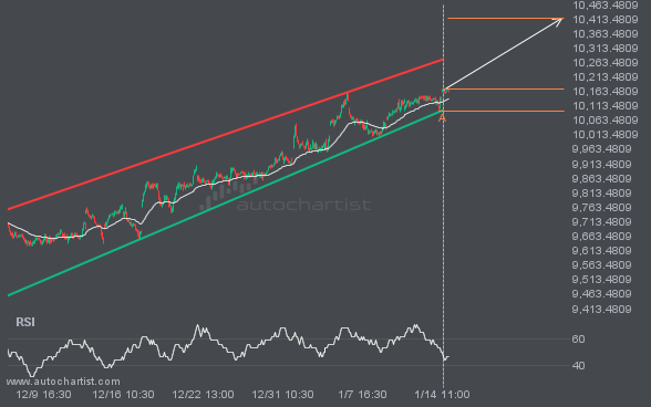 FTSE100 was identified around 10172.6 after recently rebounding off the support on the 30 Minutes interval. Ultimately, the stock’s price action has formed a Channel Up pattern. This squeeze may increase the chances of a strong breakout. The projected move could take the price to around 10415.5831.