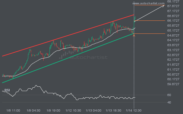 LTCUSD has broken through the support line of a Descending Triangle technical chart pattern. Because it has retraced from this line in the past, you should wait for confirmation of the breakout before taking any action. It has touched this line twice in the last 2 days, suggesting a possible target level around 74.5781 within […]