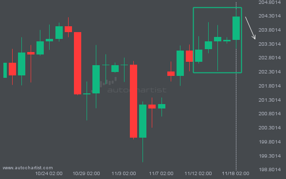 S&P500 is approaching the line at 6727.1401. If this move continues, the price of S&P500 could test 6727.1401 within the next 9 hours. But do not rush to trade. It has tested this line many times in the past, so the move could be short-lived and end in a rebound.