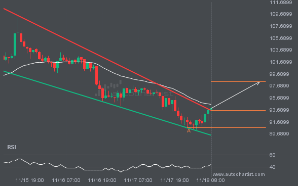 LTCUSD has broken through the resistance line, which it has tested twice before. We have seen it retrace from this line before, so wait for confirmation of the breakout before trading. If this new trend persists, a target level around 98.4387 may materialize within the next 20 hours.