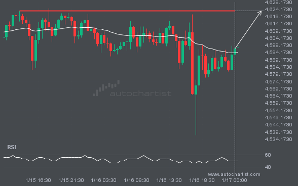 S&P500 is moving toward a key resistance level at 6988.4102. This level has been tested before for S&P500. This may present a good trading opportunity either at the spot price or after a breakout through this level.