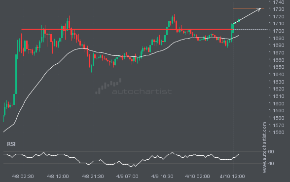 EURUSD is once again retesting a key horizontal resistance level at 1.1703. This level has been tested 4 times recently and could see another bounce, as it did last time. However, after so many attempts, it may be ready to start a new trend.