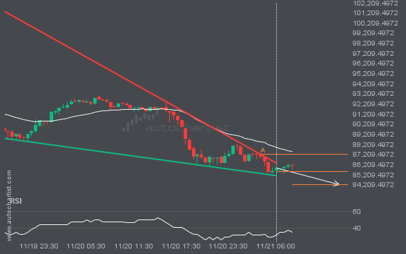 BTCUSD was identified around 85501.04 after recently rebounding off the resistance on the 30 Minutes interval. Ultimately, the stock’s price action has formed a Falling Wedge pattern. This squeeze may increase the chances of a strong breakout. The projected move could take the price to around 84241.2217.