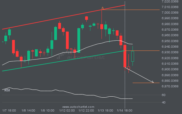 S&P500 has broken through the support line of a Channel Up technical chart pattern. Because it has retraced from this line in the past, you should wait for confirmation of the breakout before taking any action. It has touched this line twice in the last 13 days, suggesting a possible target level around 6876.2009 within […]