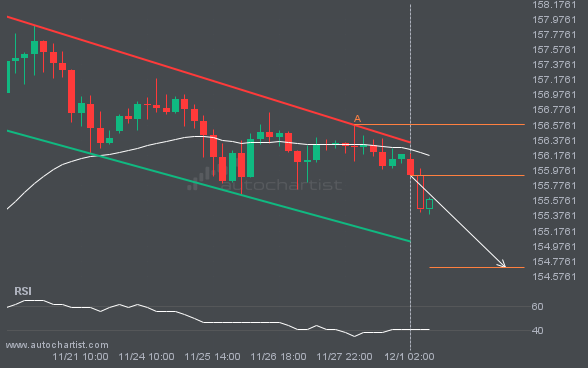 USDJPY is moving toward a support line. Since it has retraced from this line before, we may see either a breakout through it or a rebound to current levels. It has touched this line multiple times in the past 18 days and may test it again within the next 2 days.