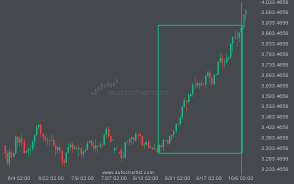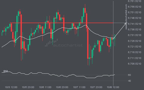 S&P500 is heading towards a line of 6742.4302. If this movement continues, the price of S&P500 could test 6742.4302 within the next 16 hours. But don’t be so quick to trade, it has tested this line numerous times in the past, so this movement could be short-lived and end up rebounding.