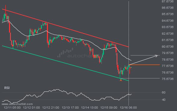 An emerging Channel Down pattern in its final wave has been identified on the LTCUSD 1 hour chart. After a strong bullish run, LTCUSD is heading toward the upper triangle trendline, with possible resistance at 79.3020. If the resistance holds, the Channel Down pattern suggests a rebound toward current levels.