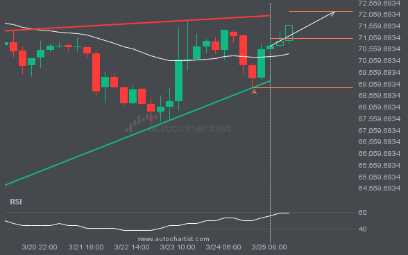 BTCUSD is heading toward the resistance line of a Rising Wedge pattern and could reach it within the next 2 days. It has tested this line numerous times before, and this time may be no different, ending in a rebound instead of a breakout. If a breakout doesn’t occur, we could see a retracement back to current levels.