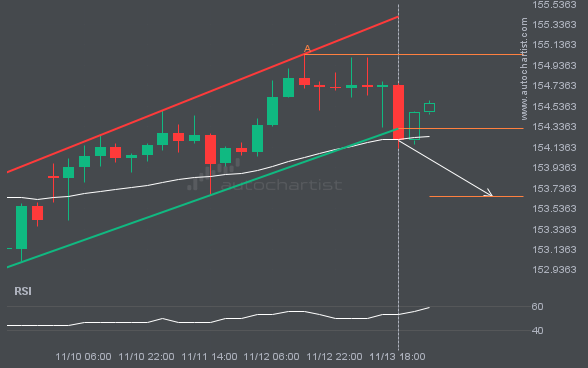USDJPY has breached the resistance line at 154.4970. It may continue the bullish trend toward 155.1205, or it may be yet another test of this level.