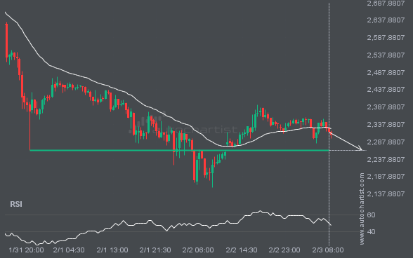 ETHUSD is approaching a critical level that could be a key deciding factor for what comes next. We may see this trajectory continue to test and break through 2264.1799, unless it loses momentum and pulls back to current levels.