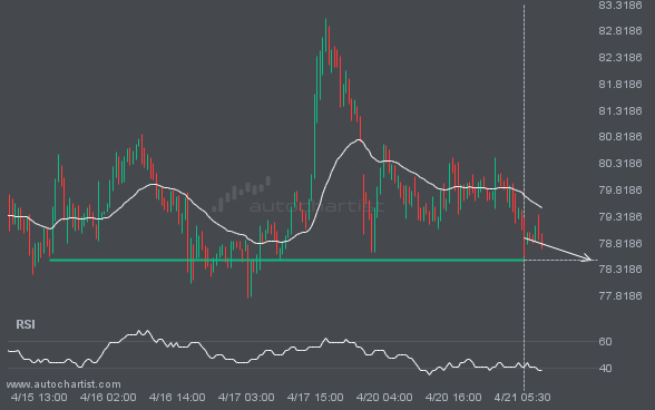 A strong support level has been identified at 78.4952 on the 30 Minutes XAGUSD chart. XAGUSD is likely to test this level soon.