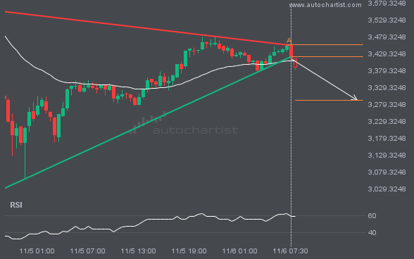 The breakout of NAS100 through the support line of a Triangle could be a sign of the road ahead. If this breakout persists, we may see the price of NAS100 testing 25445.6219 within the next 2 days.