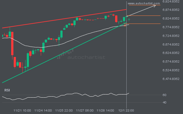 Emerging Rising Wedge detected on USDJPY – the pattern is an emerging one and has not yet broken through support, but the price is expected to move up over the next few hours. The price at the time the pattern was found was 149.086 and it is expected to move to 150.0222.