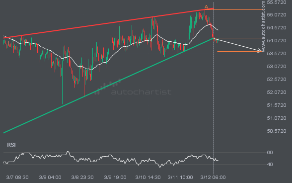 It would be prudent to confirm the breakout that just occurred. Do you consider the move through support significant? Do you have indicators confirming that the price momentum will continue? If so, aim for a target of 53.6635, but consider reducing your position size as the price approaches that target.