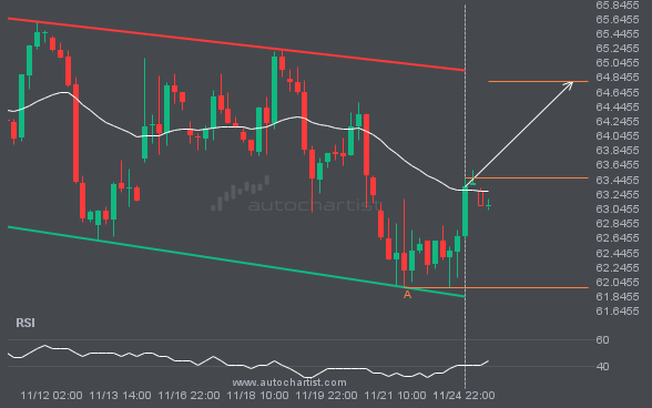 GBPJPY is approaching the line at 204.7405. If this move continues, the price of GBPJPY could test 204.7405 within the next 21 hours. But do not rush to trade. It has tested this line many times in the past, so the move could be short-lived and end in a rebound.