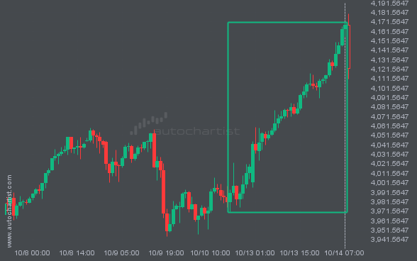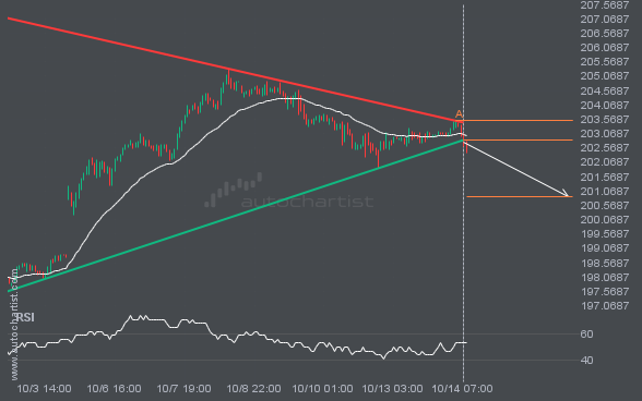 NGC/USD has broken through the resistance line of a Channel Down technical chart pattern. Because we have seen it retrace from this line in the past, one should wait for confirmation of the breakout before taking any action. It has touched this line twice in the last 7 days and suggests a possible target level […]
