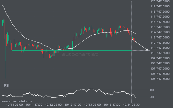 BTCUSD is heading towards 111208.2891 and could reach this point within the next 15 hours. It has tested this line numerous times in the past, and this time could be no different, ending in a rebound instead of a breakout. If the breakout doesn’t happen, we could see a retracement back down to current levels.