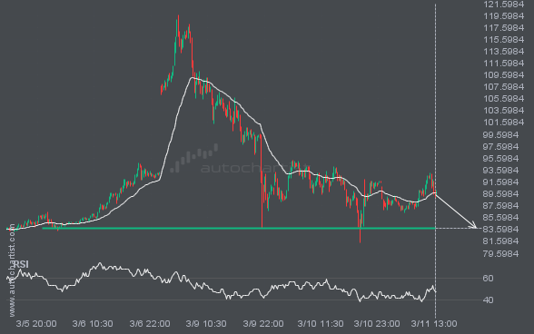 BRN/USD is approaching a critical level that could be a key deciding factor for what comes next. We may see this trajectory continue to test and break through 83.8730, unless it loses momentum and pulls back to current levels.