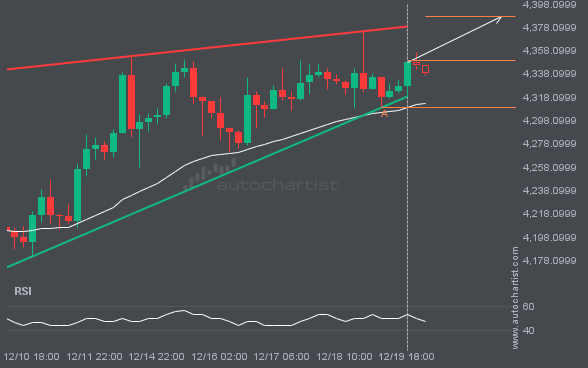 XAUUSD has broken through the support line, which it has tested twice before. We have seen it retrace from this line before, so wait for confirmation of the breakout before trading. If this new trend persists, a target level around 4295.5352 may materialize within the next 2 days.