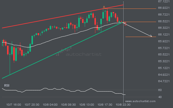 This trade setup on BRN/USD is formed by a period of consolidation; a period in which the price primarily moves sideways before choosing a new direction for the longer term. Because of the bearish breakout through support, it seems to suggest that we could see the next price move to 66.0546.