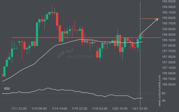 USDJPY has broken through the support line of a Triangle technical chart pattern. Because it has retraced from this line in the past, you should wait for confirmation of the breakout before taking any action. It has touched this line twice in the last 7 days, suggesting a possible target level around 157.7941 within the […]