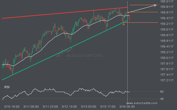 It would be prudent to confirm the breakout that just occurred. Do you consider the move through support significant? Do you have indicators confirming that the price momentum will continue? If so, aim for a target of 1.1576, but consider reducing your position size as the price approaches that target.